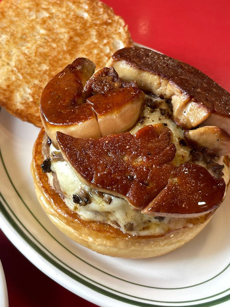 This burger features two generous slices of foie gras, pan-seared to a crispy exterior while retaining a creamy, melt-in-your-mouth interior. The rich, savory flavor of the foie gras instantly fills your mouth upon the first bite, perfectly complemented by a juicy, tender beef patty—a match made in heaven! The burger bun is soft and moist, with just the right balance that neither feels heavy nor too airy, making for an exquisite eating experience.