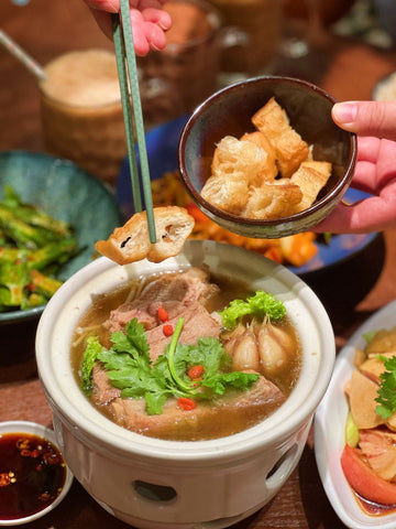 The rich broth is spicy with white pepper and cinnamon aromas, and the pork ribs are stewed and tender, and the meat becomes boneless with a gentle sip. With fried dough sticks, it is the essence of the soup base to absorb, every bite is full of happiness.