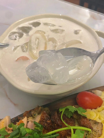 Thai dessert, taste amazing! Very refreshing, sweet but not cloying. If you don't like coconut, you’d be fascinated by this coconut dessert. The only ingredient inside is palm fruit. If you are used to eating desserts with various toppings such as pearl, taro ball, red beans, you may find this monotonous. Palm fruit is chewy, but there are two other options: rambutan and longan.