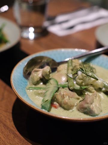 The chicken is tender, the curry is fragrant with coconut milk, and it has asparagus and cauliflower. Recommended to go with rice.
